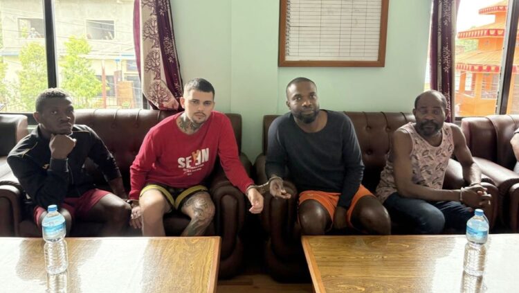 पक्राउ पर्नेमा नाइजेरियन नागरिकहरू ३८ वर्षीय मो लामिन्स डाबो, ३५ वर्षीय ग्लोरी बडे, ५५ वर्षीय इमनिउल ओगुडा उजिगवे र ब्राजिलका नागरिक २५ वर्षीय लारेसन ब्रिटो रहेको धनुषा प्रहरीले जानकारी दिएको छ ।